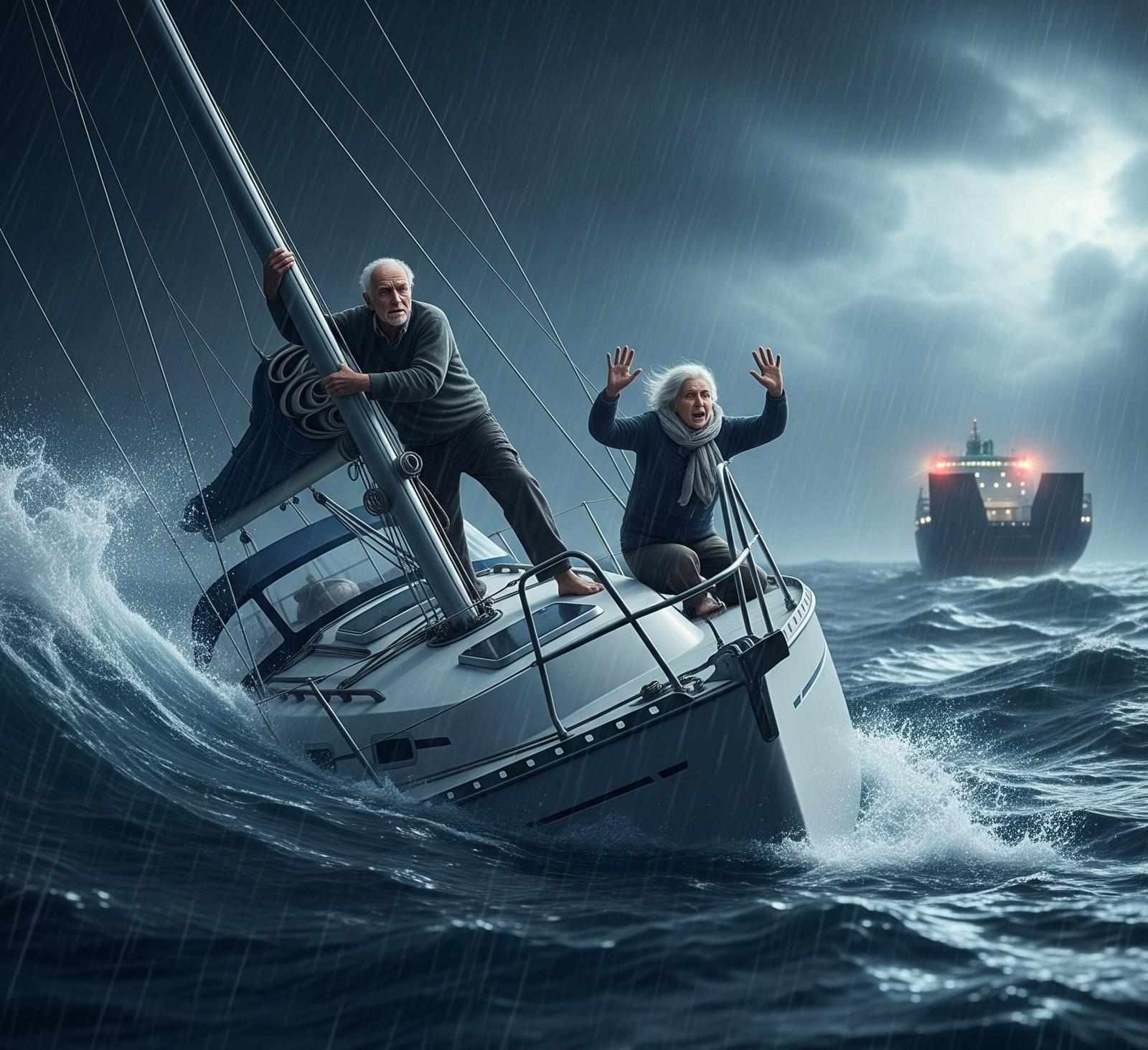 “He calmly stood up and put his shoes on, then followed me to the bridge. The emergency message continued to repeat on the VHF. I led Captain Don Quixote to the radar and showed him that we were near the sailing boat in distress. His eyes widened as if they were about to pop out. I felt like a dog on a chain, frustrated that Captain Don Quixote was taking his time while people were in danger. Thoughts raced through my mind: 'Those people could drown. We must act now.' My heart was pounding, and I knew I had to do something.