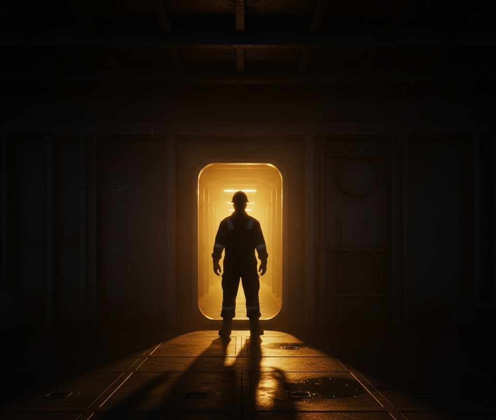 The next day, it was sunny and an inspector from the shore came on board to inspect our cargo holds. I accompanied the inspector and Chief Officer John down into the first hold. The inspector looked around the hold and walked to a forward wall. He put some white gloves on his hands and then petted the wall with his right hand.